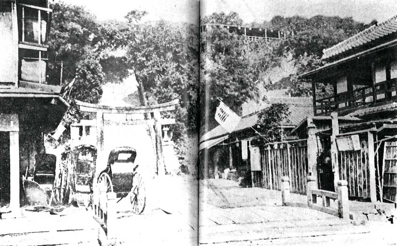 明治中期の愛宕神社参道風景 出世の石段下に橋が架かっている。写真=『写された港区』(昭和56年、港区)から転載