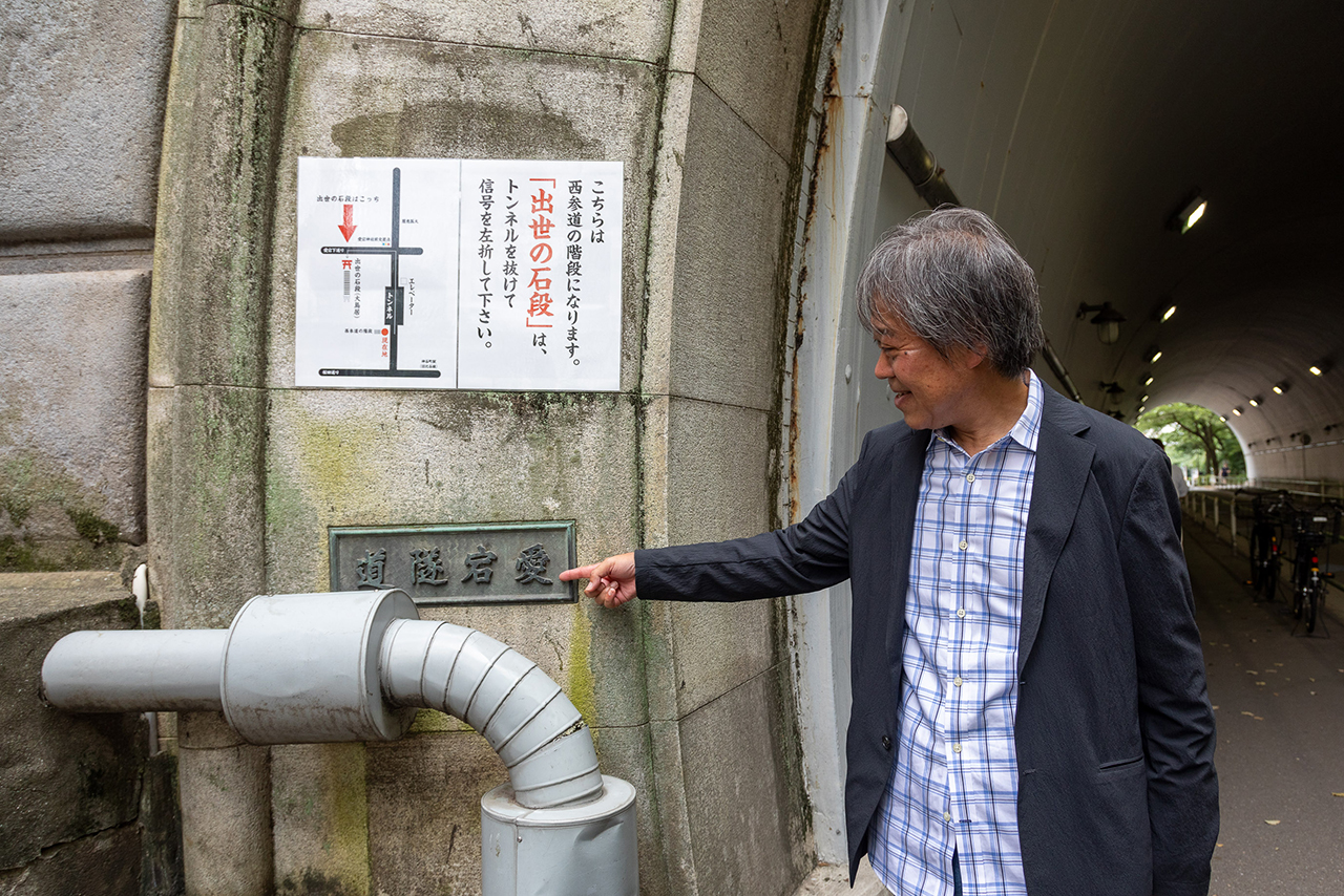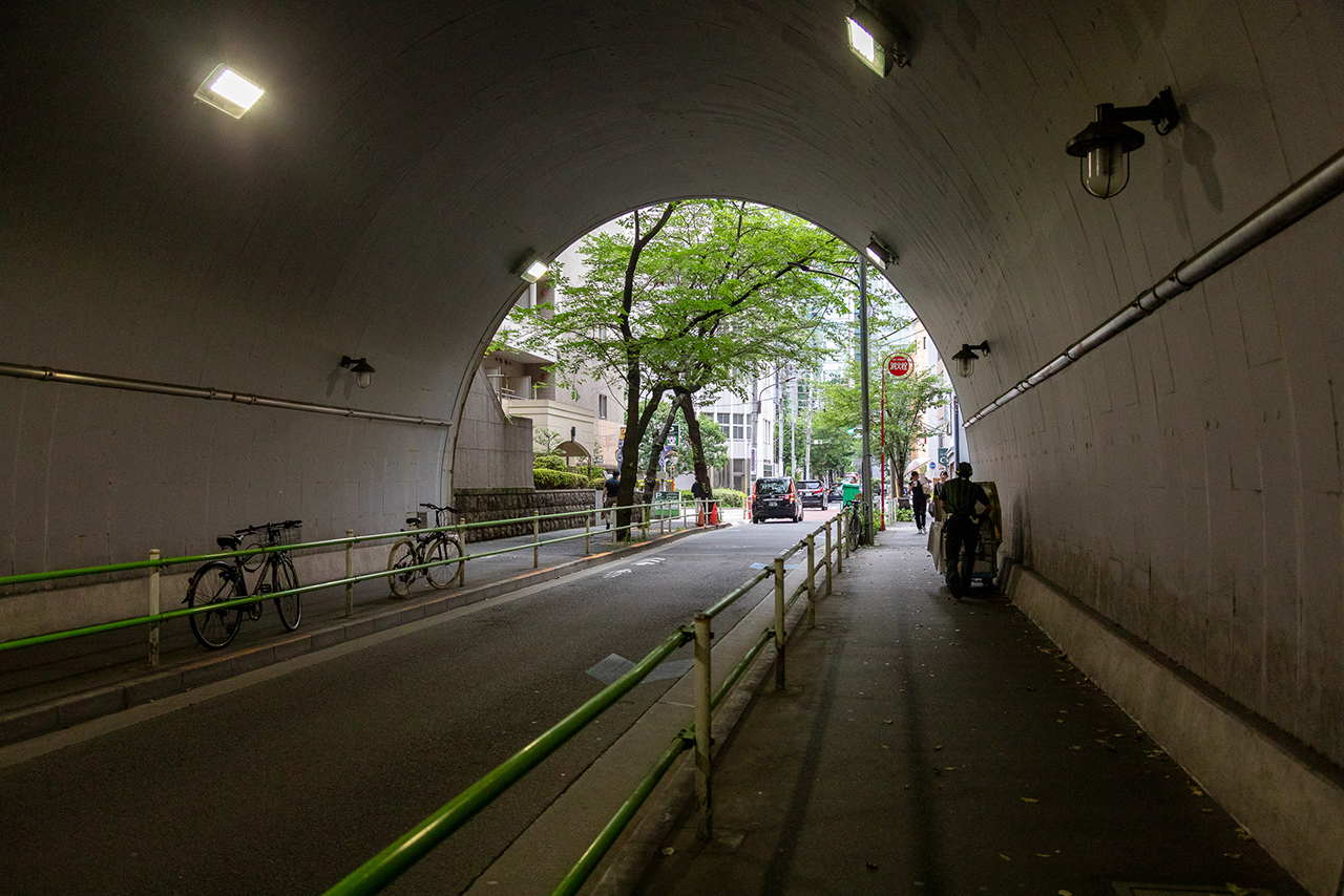 本殿にお参りして、その脇の階段を下りて麻布台ヒルズ方面に向かいます。階段を下りたところにあるのが「愛宕隧道」。