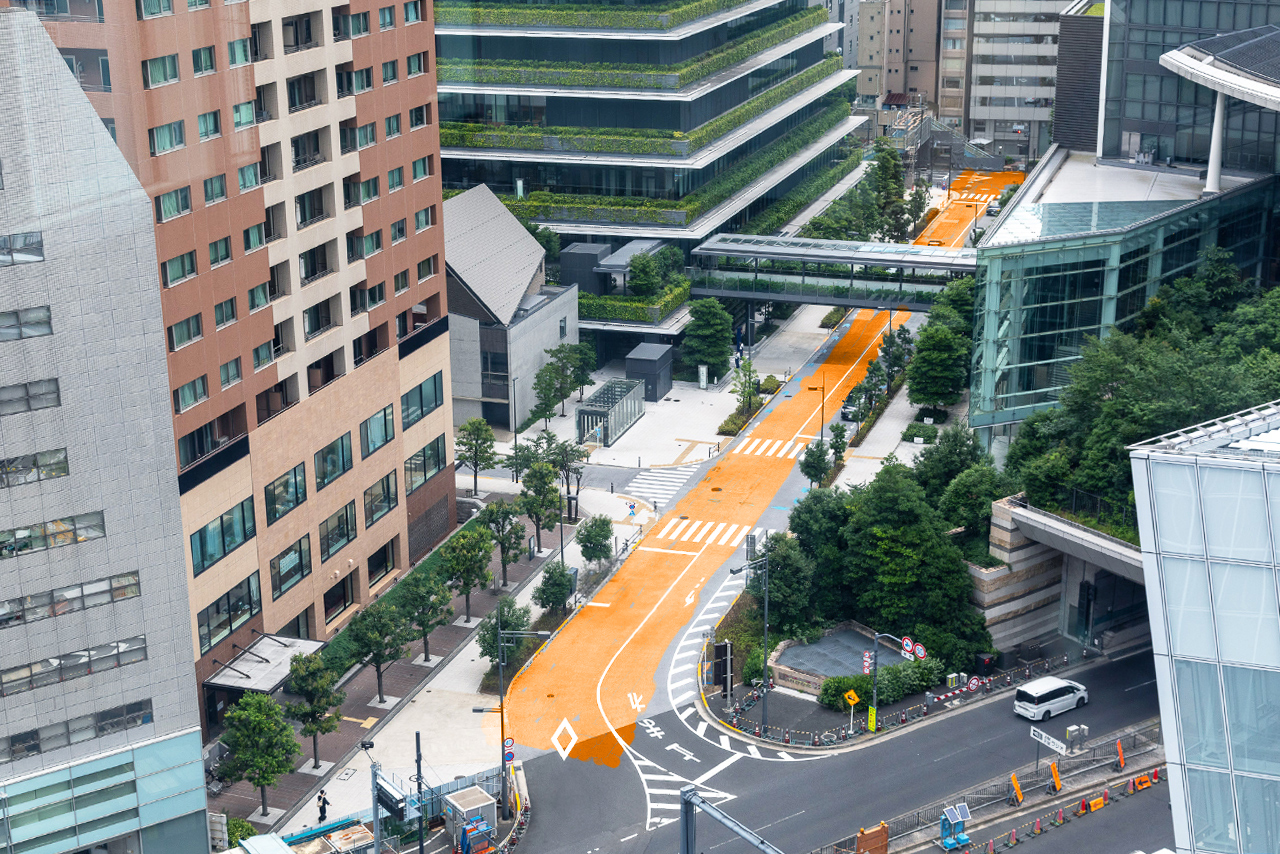 「桜川が流れていたのは、森タワーとビジネスタワーの間の道沿いです。そしてその先で、90度南に曲がっていました」(皆川)