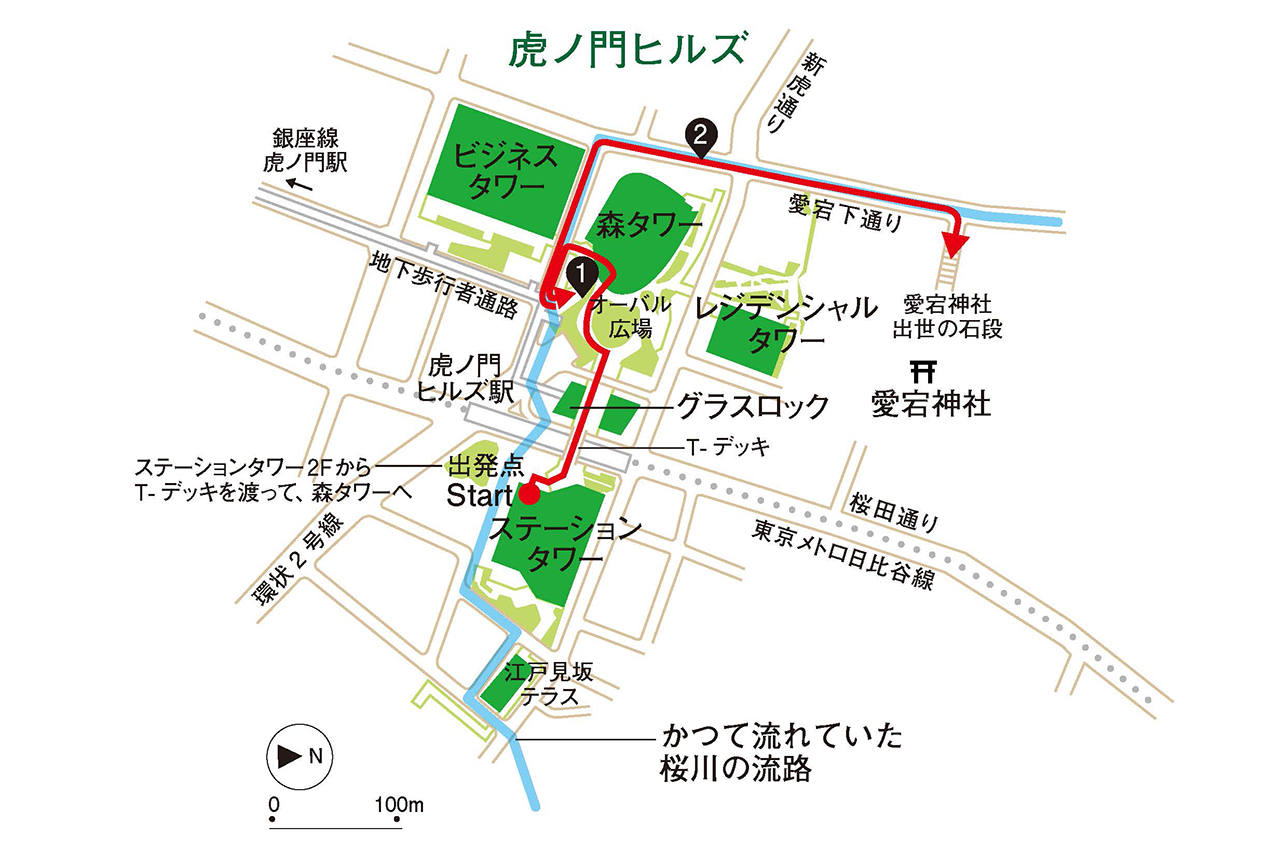 虎ノ門ヒルズのビルの谷間にかつて流れていた桜川