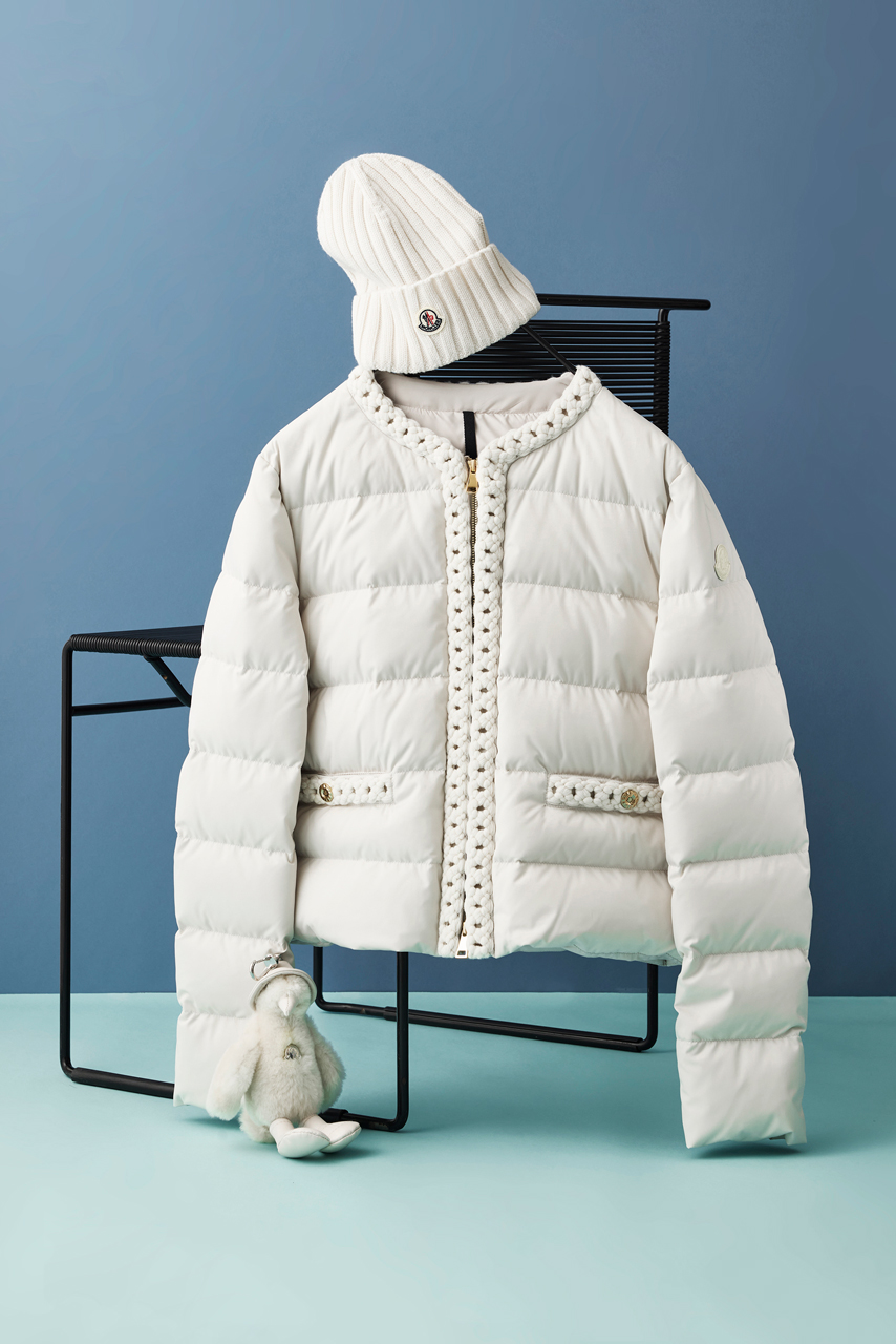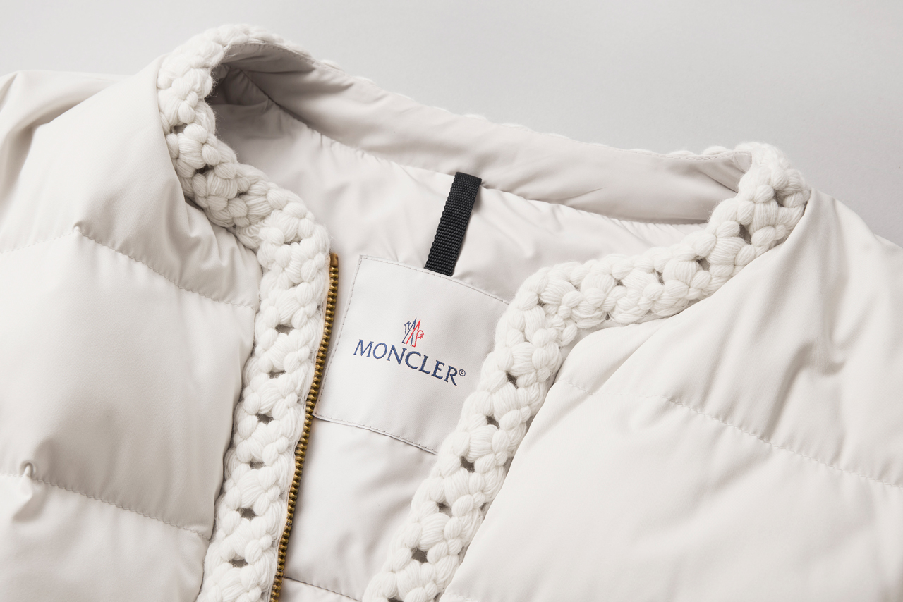 ラグジュアリーなダウンジャケットで知られるモンクレールからは、ショート丈のダウンジャケットをセレクト。「コートのインに着られるくらい薄いダウンジャケット。これだけ薄くて、しっかり暖かいところにモンクレールの凄さを感じます。フロントファスナーやポケットにあしらわれたマクラメレースでデザイン性も高く、丈も短いから軽やか。ニットビーニーを合わせてカジュアルに着ても可愛いし、スタイリッシュなボトムと合わせてきれいめにも着られる。特に車移動の方には最高の1枚と言えるのではないでしょうか」