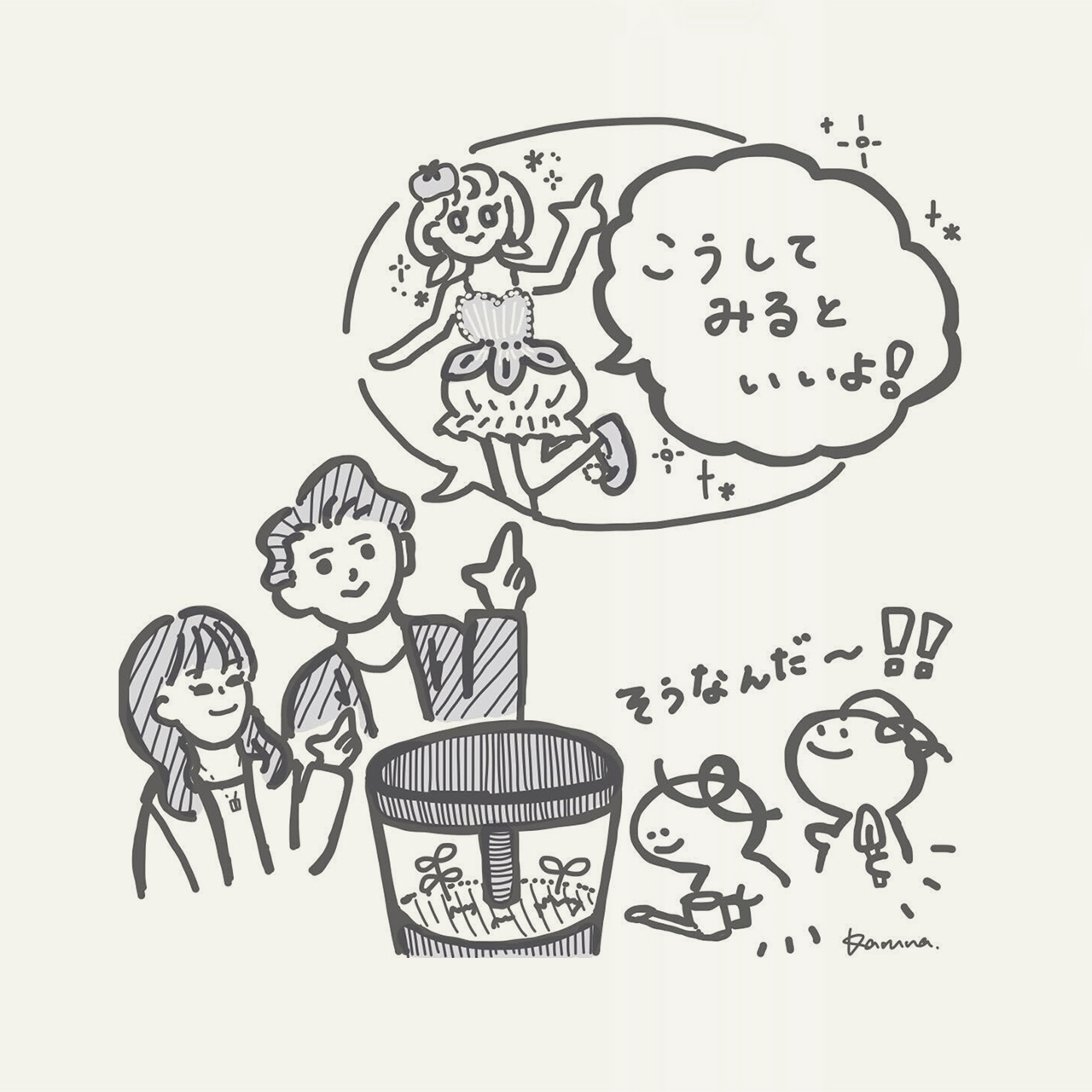 國吉 インドアファーミングの目的はコミュニティーの形成やコミュニケーションの活性化にありますので、「水をあげました」「ありがとうございます」といった単純なやり取りだけでなく、参加者同士で対話が盛り上がるような仕組みにしたいと考えました。それをARCHのメンターである渡瀬ひろみさんに相談したところ、「キャラクターを作ったらいい」とのアドバイスをいただきました。運営側として私がコメントを入れることも多いのですが、「國吉からのお知らせです」などとすると、どうしても堅苦しくなり、監視されている気分になる人もいると思います。「野菜の妖精 ベジ子」を誕生させたおかげで、「ベジ子が専門家に聞いてみるからちょっと待っててね」「こうするといいよ」などと気楽なやり取りができるようになりました。