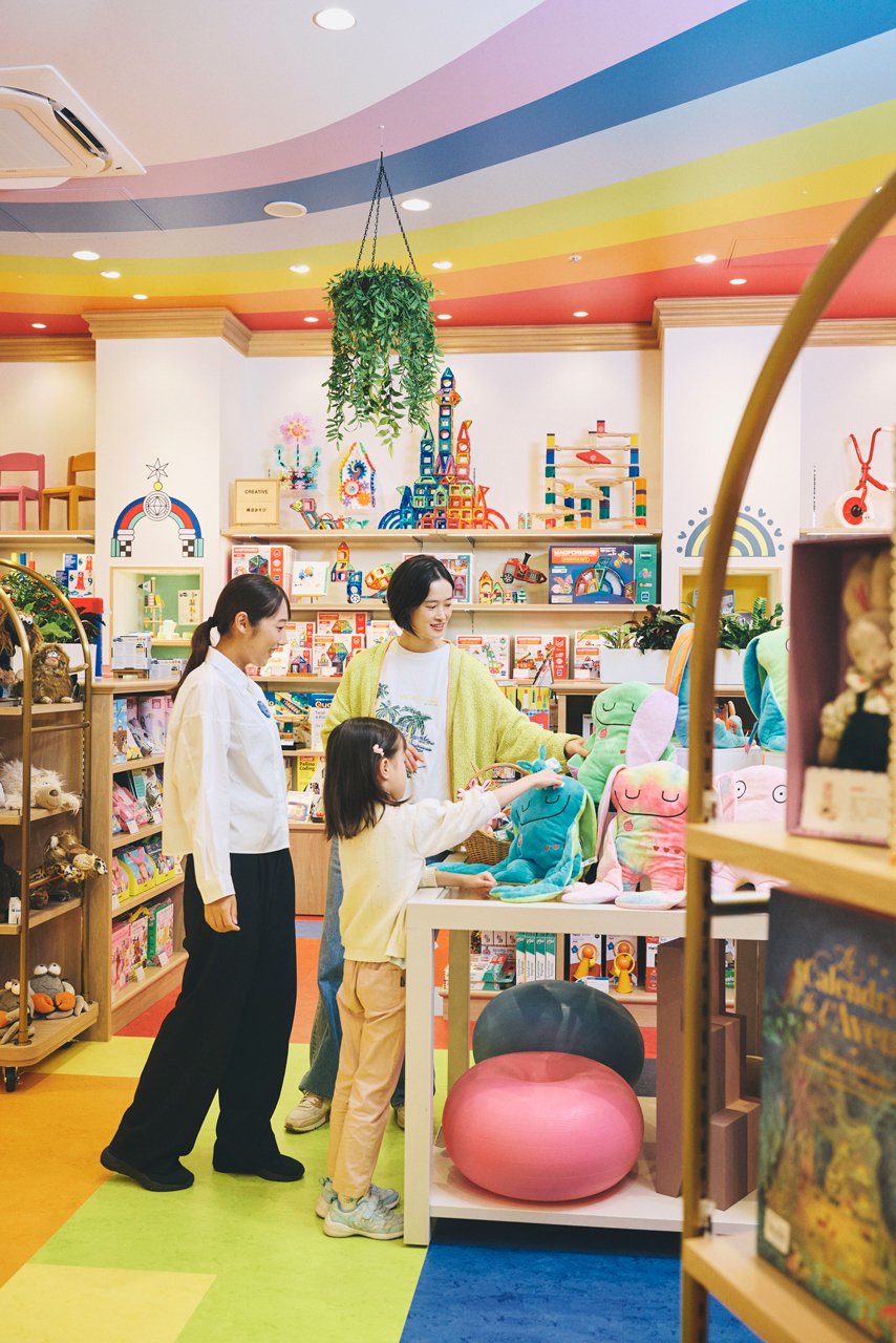 「お店に入ると、カラフルで子どもが好きそうなおもちゃがたくさん! 手に取ってみると、パーツの一つひとつが丁寧に作られていて、細かなこだわりを感じました。大人も遊びたくなるアイテムもあり、一緒に楽しみたくなりました。親子ラウンジは落ち着いた空間でリラックスできました。娘はビーズアクセを夢中で作っていましたね。おばあちゃんへのプレゼントを作りたいそうです。大人がつけてもいいくらい本格的なアクセサリーキットで、美的感覚が磨かれそう」