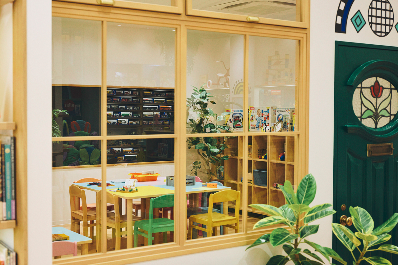 こちらが新設された親子ラウンジ。おとぎ噺に出てきそうなアンティーク風のドアの向こうには、カラフルなテーブルと椅子が配された空間が広がります。