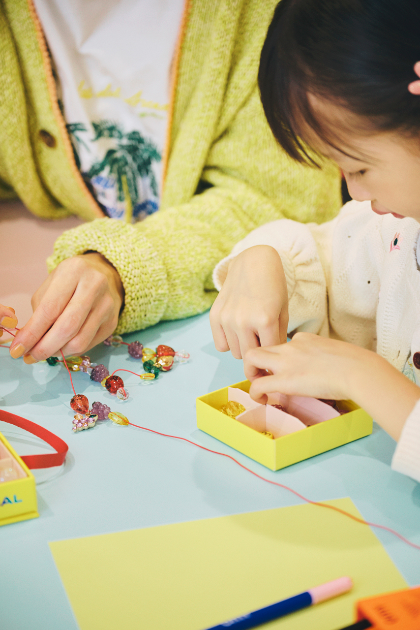 「ジュエル・ポップ」のセットを使って自分だけのジュエリー作り。商品はショップで購入できるのも嬉しい。