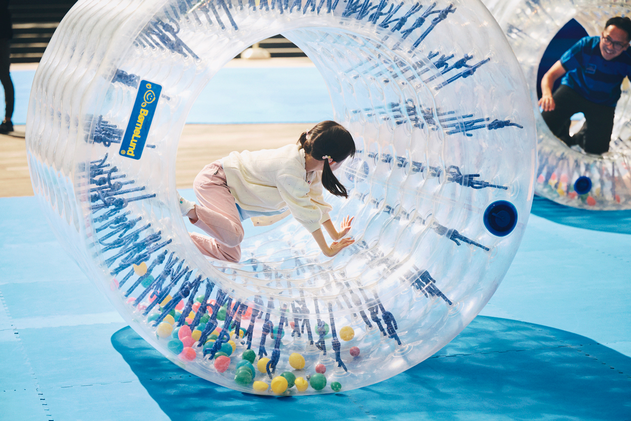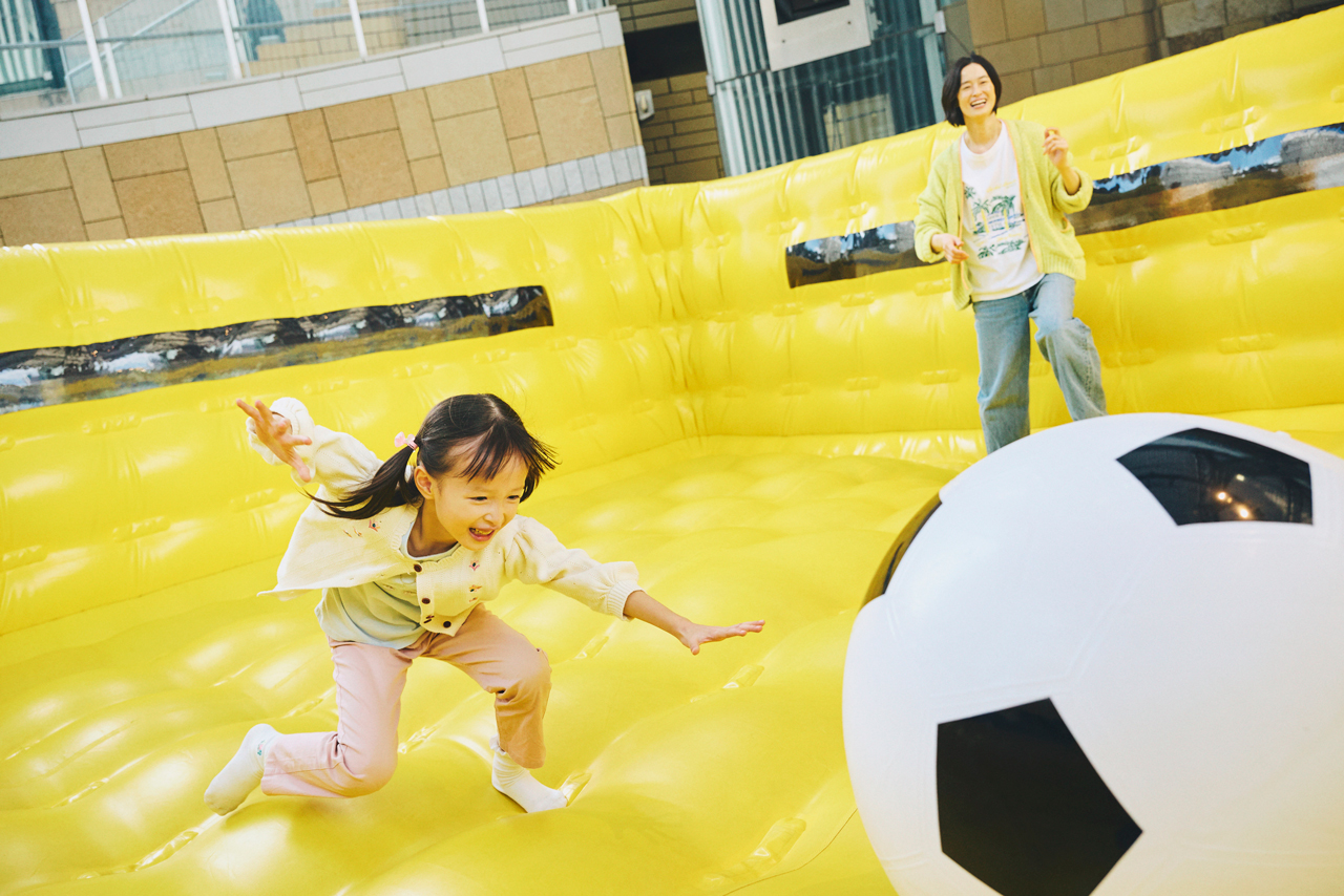 ふわふわ、浮遊感が楽しめる「エアキャッスル」。「長女はトランポリンが大好きなので、喜んでいましたね。大人もしっかり身体を動かすことができ、運動不足解消に役立ちそう」(宮本さん)