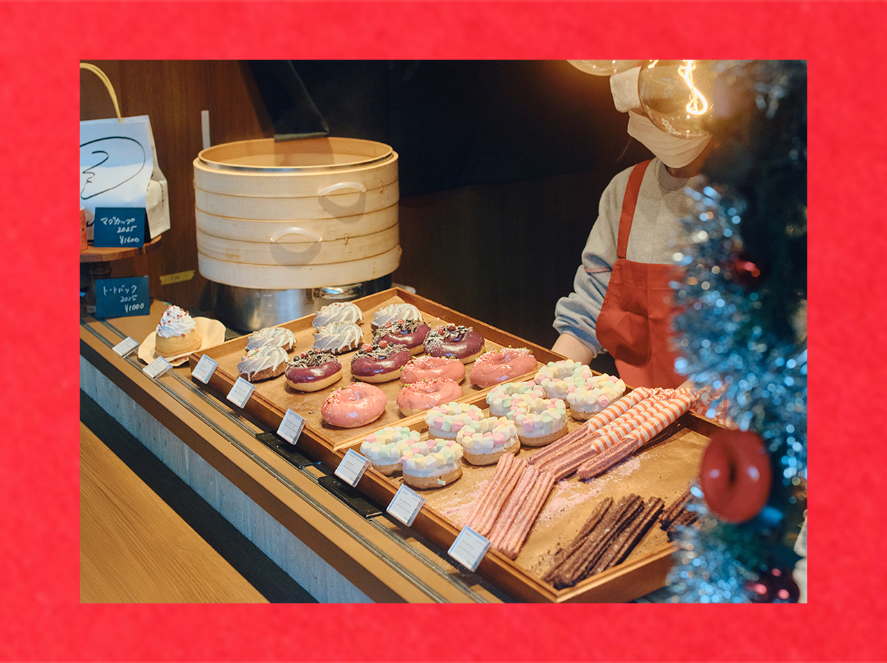 紀尾井町のドーナツラボラトリー「ホーカス ポーカス」が、麻布台ヒルズのクリスマスマーケットに登場! せいろで蒸したふんわりドーナツやチュロスを片手に、麻布台ヒルズのクリスマスマーケットを巡ってみよう。