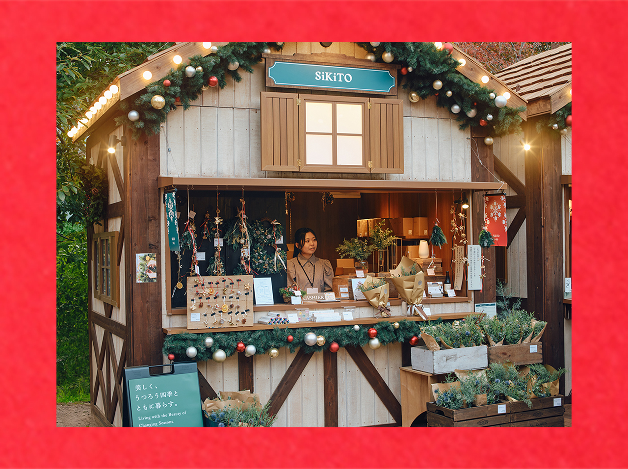 四季を愛でる文化を枝ものを通じて届ける「SiKiTO」が麻布台ヒルズのクリスマスマーケットに初出店。天然の生枝を用いたリースやスワッグは、フレッシュで爽やかな香りが魅力。麻布台ヒルズの植栽を取り入れた特別なブーケも登場(数量限定)