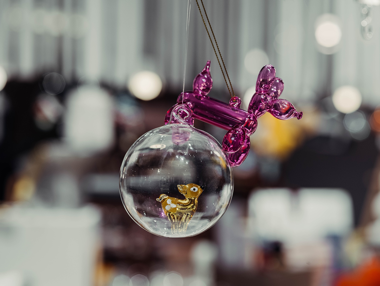 麻布台ヒルズの〈ザ・コンランショップ 東京〉を訪れた佐藤さんがまず手に取ったのは、イタリアのガラスメーカー・ICHENDORF(イッケンドルフ)のクリスマスコレクションとザ・コンランショップオリジナルのバルーンアートモチーフオーナメント。「こんな可愛いオーナメントがあるなんて! と、一目惚れしました。遊び心たっぷりで、個性的なツリーになりそうですね。クリスマスパーティーのプレゼント交換に持って行きたいです」