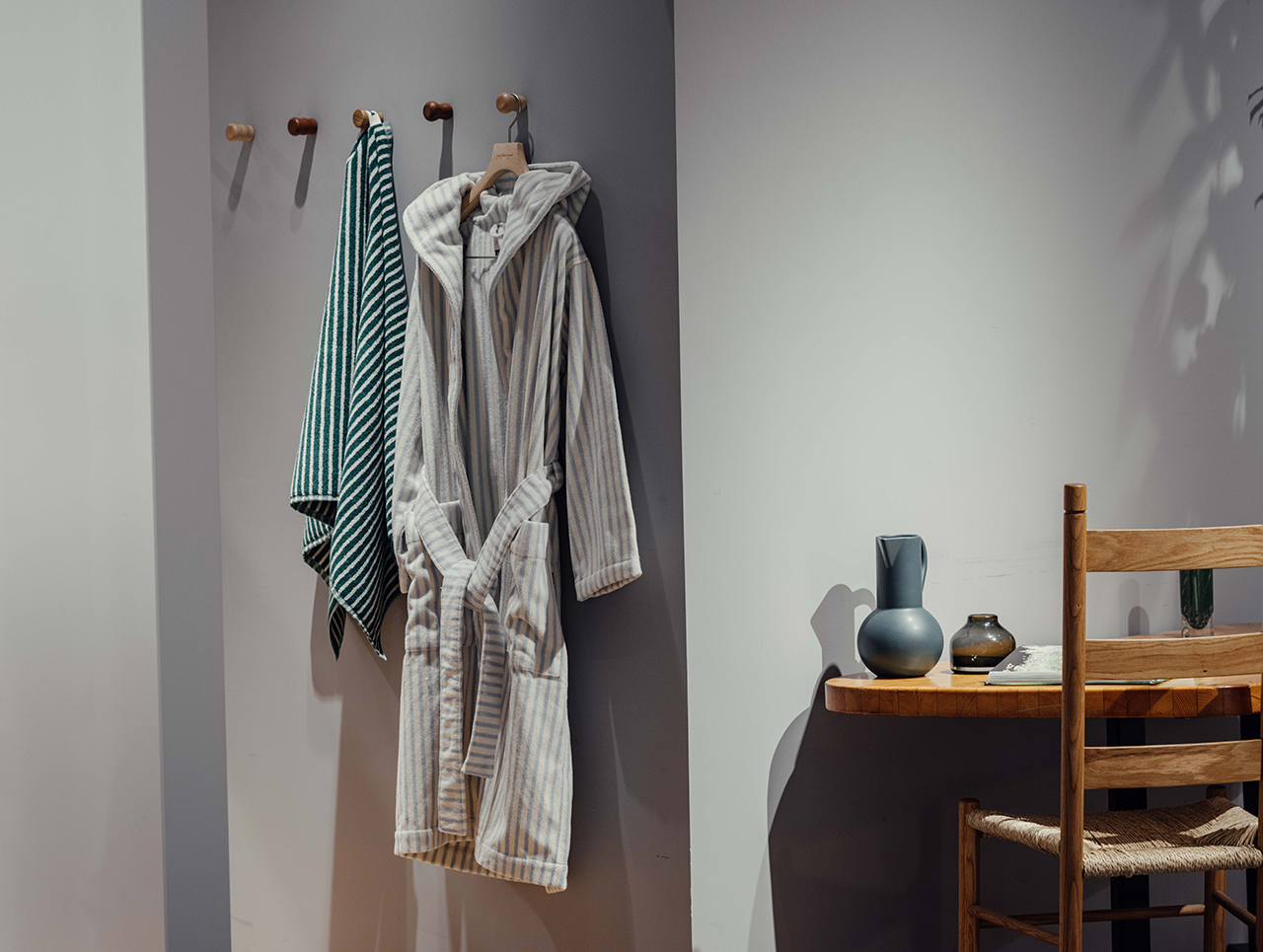 TEKLA フードバスローブ¥37,400、バスタオル¥13,200(ザ・コンランショップ 東京/麻布台ヒルズ タワープラザ 3F)