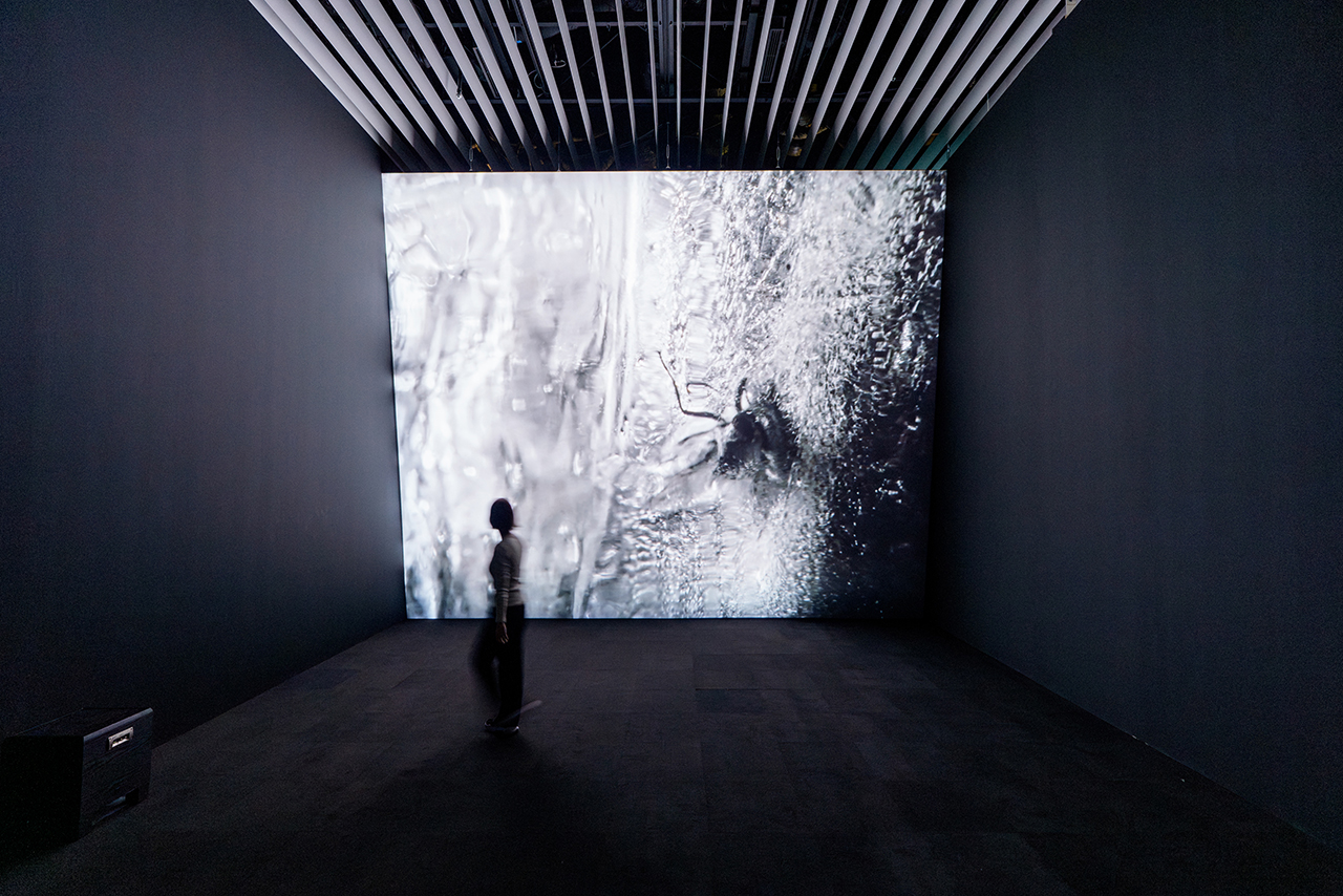 気候変動によって絶滅する痕跡を、重層的な映像で問いかける。マヤ・ワタナベ《ジャールコフ》2025年 コミッション・製作:イン・ビトウィーン・アート・フィルム財団 助成:モンドリアン財団 展示風景:「六本木クロッシング 2025 展:時間は過ぎ去る わたしたちは永遠」森美術館(東京)2025-2026年 撮影:竹久直樹 画像提供:森美術館