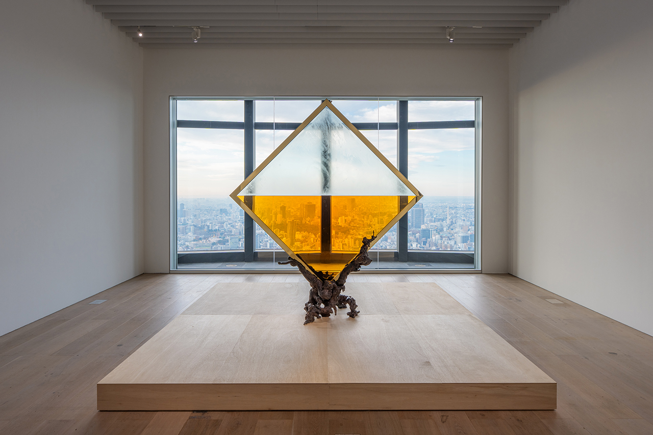 德山 和田さんとは10年越しのお付き合いで、やっと今回森美術館で紹介することができました。和田さんは初期の頃からコンセプトは一貫していて変わらない。ブロンズと真鍮という素材を扱いながら、ゆっくりだけど、徐々に自分の作品の幅を拡大させています。1つのメディア、限られたメディアにこだわって、自分のアートは何かを追求し続けている、割と古いタイプのアーティストという感じの人ですね。和田さんの作品はクラシックな彫刻だから、誤解を恐れず言えば、例えば大理石で作られたギリシャ彫刻であり、そしてその彫刻とは何ぞやって系譜の中に置かれるような作品、というふうに捉えてもらっていいかと思います。例えばこの作品の液体と気体は、ありとあらゆる二元論に当てはめられる象徴的なもの。生と死であったり、未来と過去、過去と現在であったりとか、そういう哲学的な問いを投げかけています。だから、日常とか生活の中には存在しない、崇高なものとしてのアート作品。唯一、窓がある部屋での展示となっているので、見るなら午前中をおすすめします。
