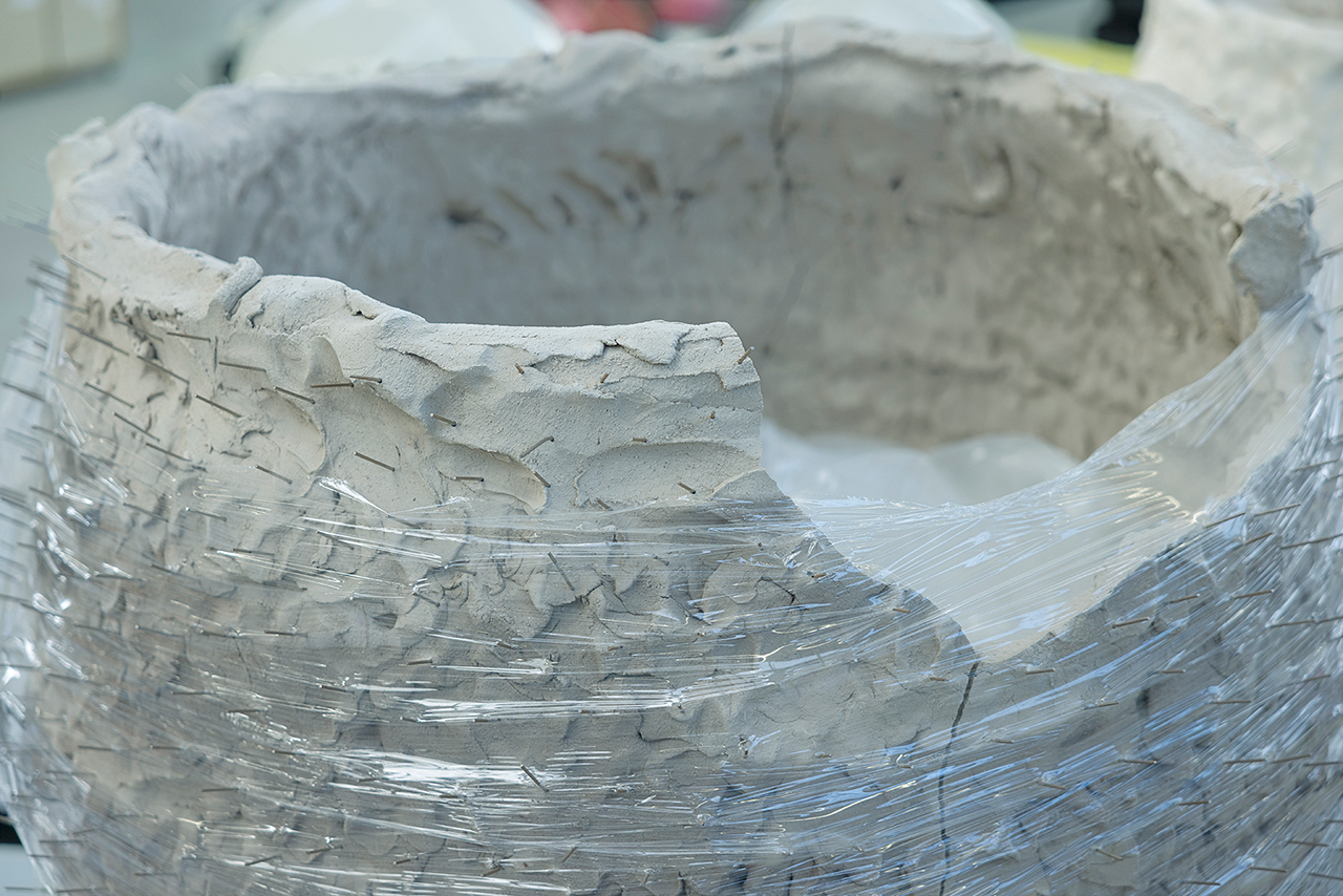 桑田 もともと器づくりから始めたので、こんなに大きなオブジェを作るようになるとは思っていませんでした。まず故郷の広島で陶芸家の財満進先生の下で修業し、その後、多治見市陶磁器意匠研究所に行きました。そこでプロダクトデザインや産業としての陶芸技法を学ぶうちに、だんだんと個人のアート活動と量産技術を混ぜたような作風になっていきました。