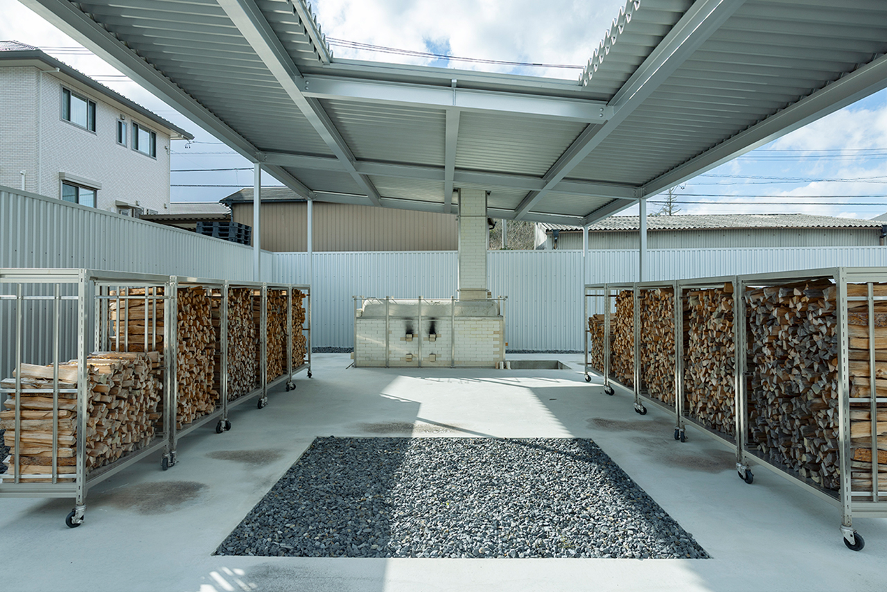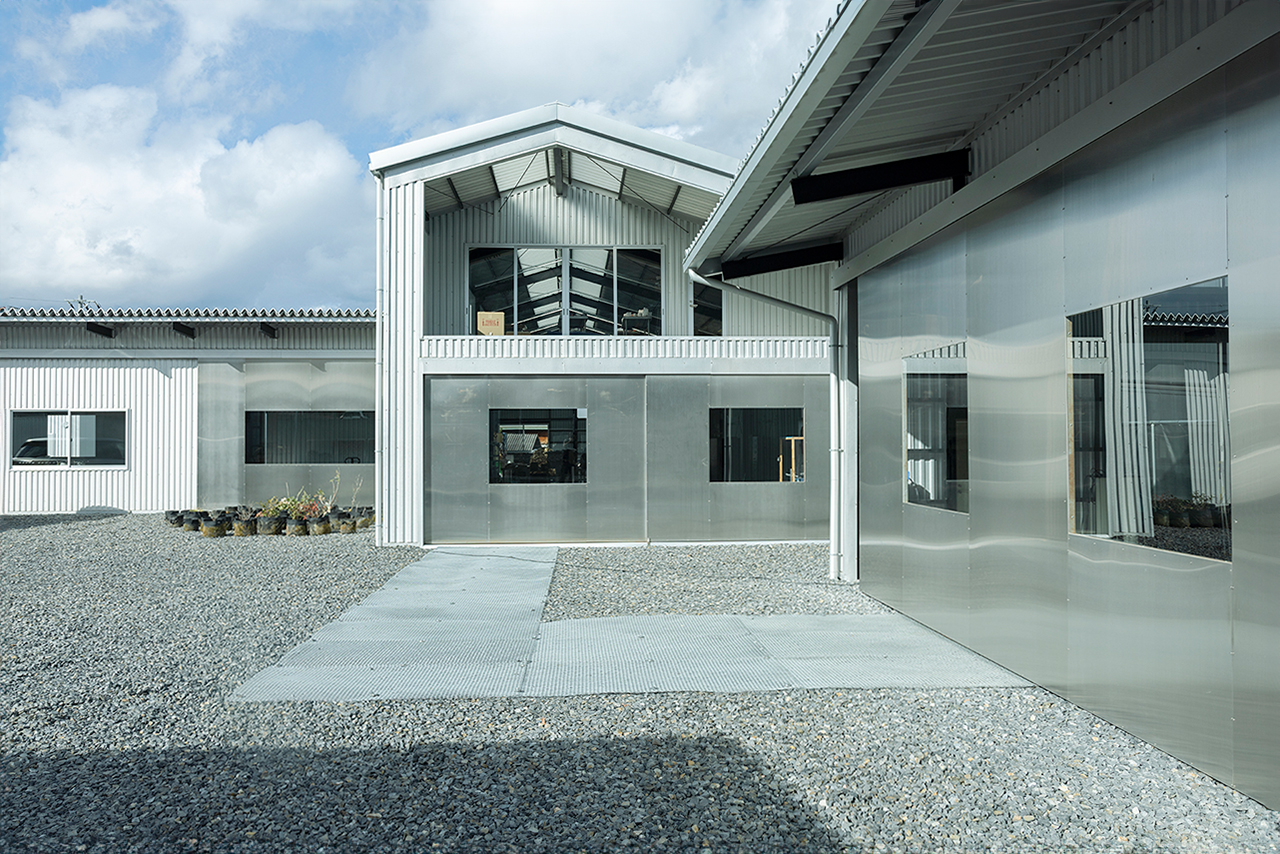 まるで精密機械工場のような桑田さんのアトリエ。前庭に敷いた園芸用の砂利はなんと「ISHIHAZE」シリーズのために使われる。